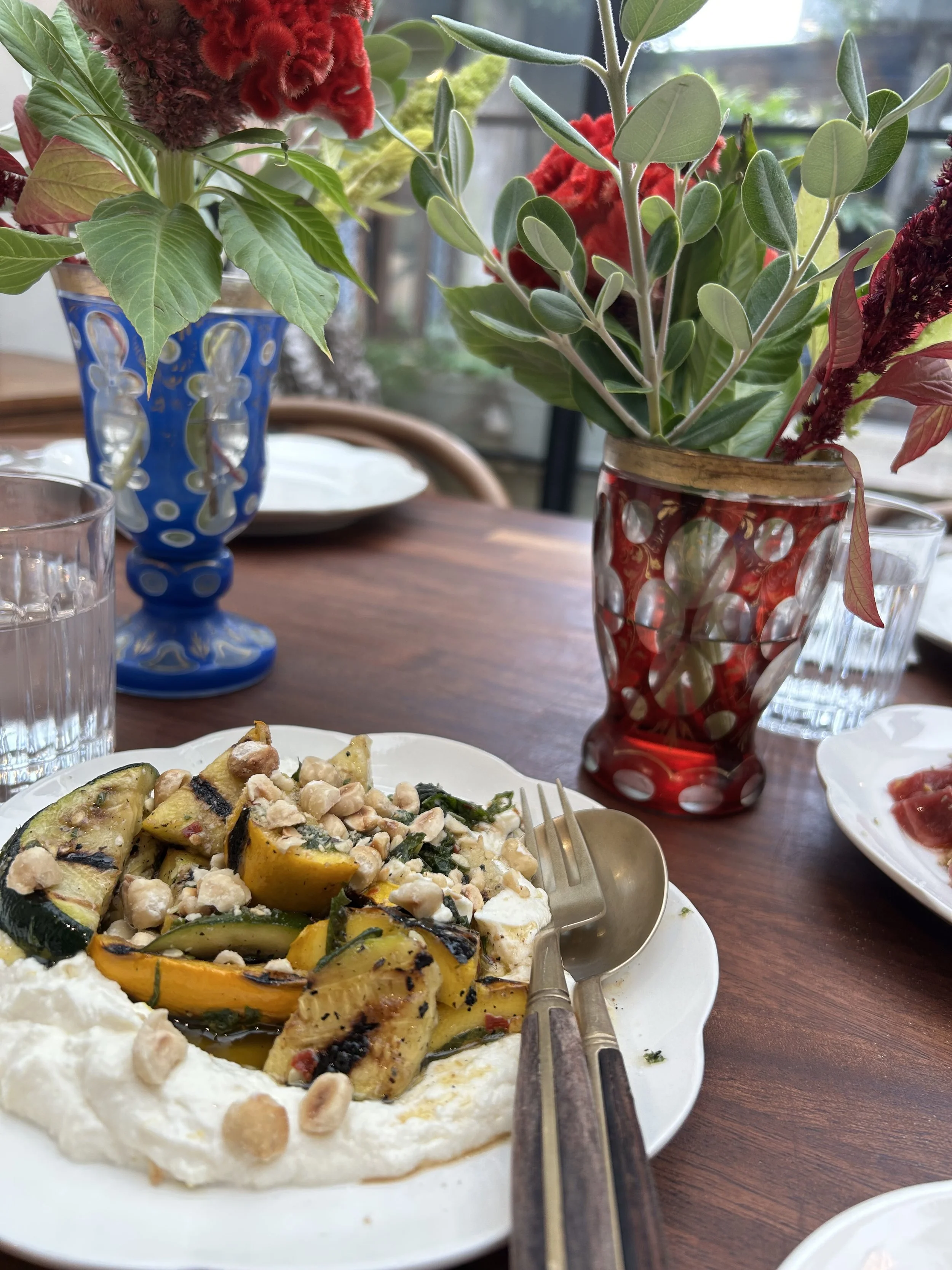 Grilled Pickled Zucchini with Whipped Lemon Ricotta, Mint and Toasted Hazelnuts